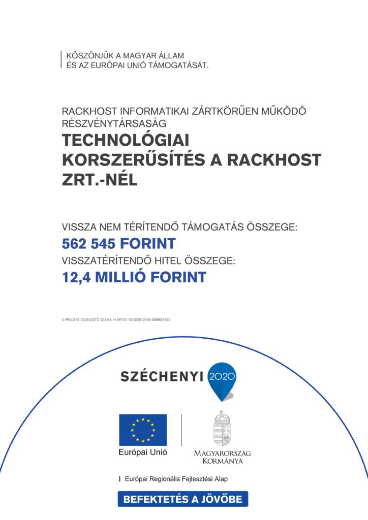 SZÉCHNENYI 2020 Pályázat azonosítója: GINOP-8.3.5-18 Elnevezés: Technológiai korszerűsítés a Rackhost Zrt.-nél